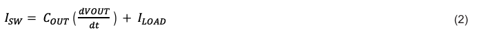 During the soft-start period, there will be a relatively large voltage across the power switch. Additionally, a current ISW will flow through the switch to charge the output capacitor at the VOUT pin. Furthermore, there may also be load current flowing to the downstream system. The total current during the soft-start period is calculated as follows: