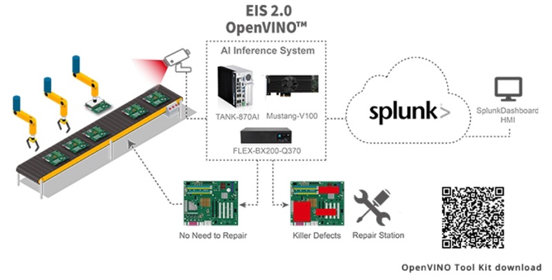 搭載EIS 2.0迅速收集產線相關數據,使用內建AI和視覺技術檢測包裝、零件或表面缺陷,將推論結果傳至適用於企業的資料分系平台Splunk Enterprise,彙整大量的資訊以眾多圖表清晰表示,並以獨有完善的界面供人們閱讀及理解。