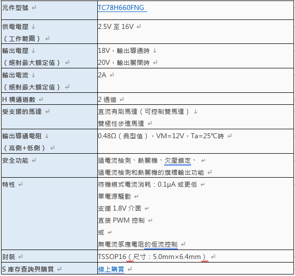東芝電子元件及儲存裝置株式會社推出H橋馬達驅動器TC78H660FNG,該驅動器採用TSSOP16封裝及廣泛使用的引腳分配。這是東芝直流(DC)有刷馬達和步進馬達驅動器系列中的最新成員,適用於包括行動裝置和家用電器在內的眾多應用。