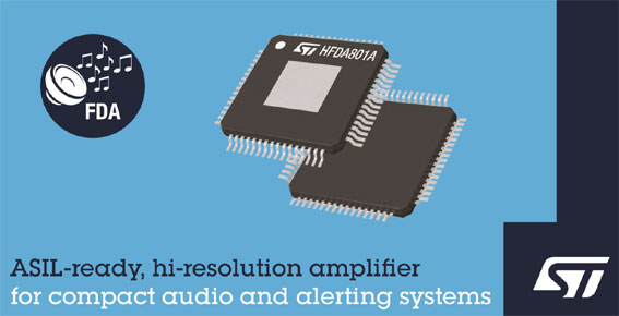 意法半導體新推出的HFDA801A是一款高解析度音訊放大器晶片,專門為尺寸緊湊、追求成本效益的車用音響系統設計。