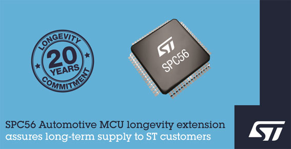ST宣佈延長在全球汽車動力總成、底盤和車身應用中部署量達數百萬的SPC56車規微控制器(MCU)的長期供貨承諾。