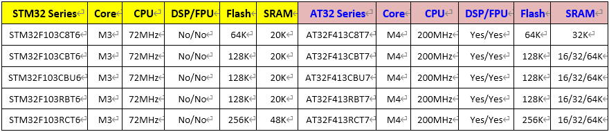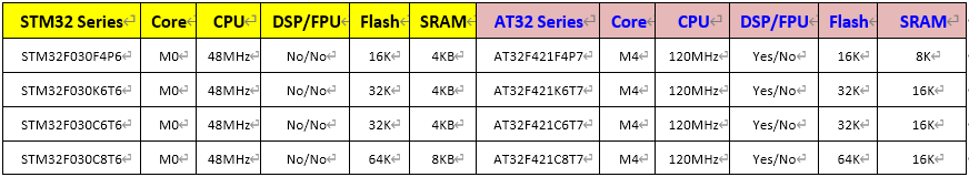 - 雅特力32位MCU AT32與競品替換對照表(ARTERY AT32 MCU Cross Reference Table)