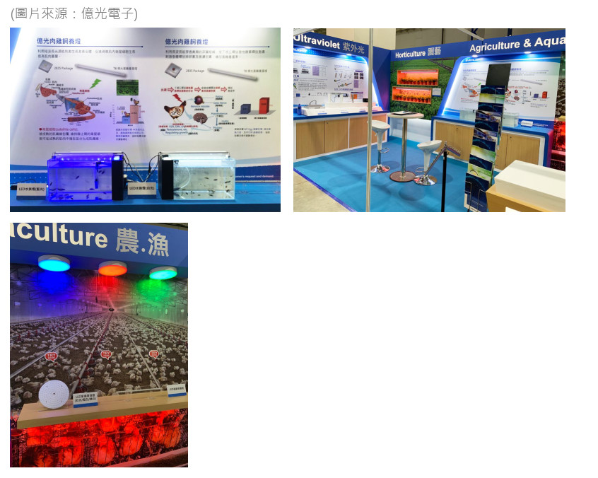 億光團隊近期將光照拓展到畜牧及養殖漁業等生物農業應用,將 LED 全光譜的波長調整技術應用於家禽及魚蝦養殖
