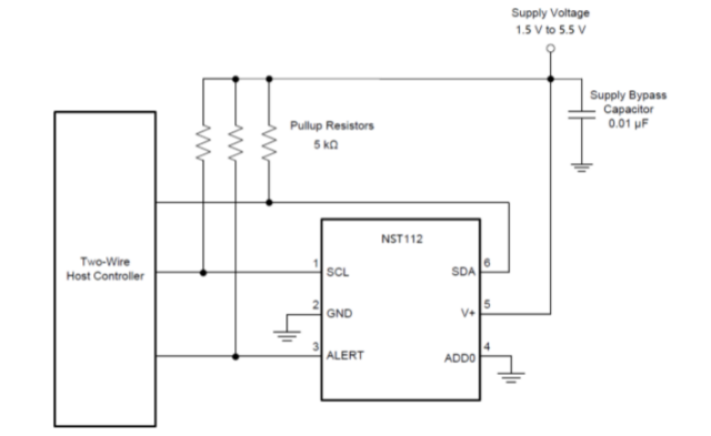 ►兼容性強——NST112兼容I²C和SMBus的接口,具有可編程警報和SMBus重置功能,單路總線可最多支持4個器件,通信方式簡單便利,可移植性更高。