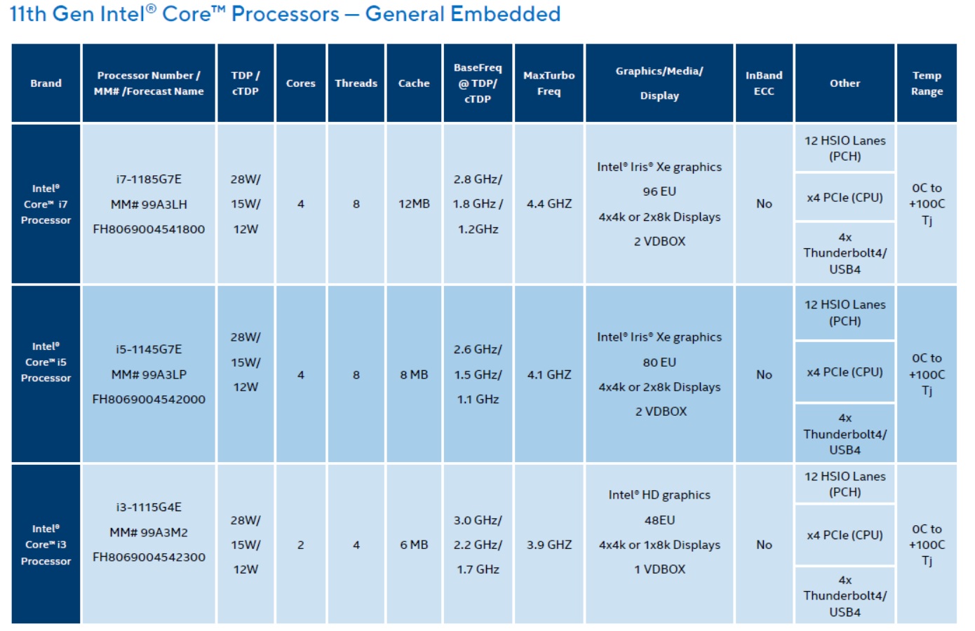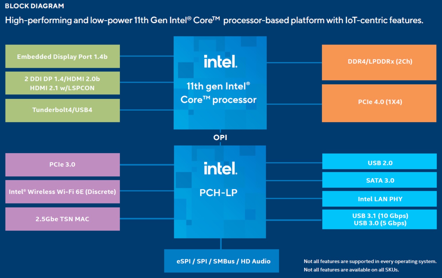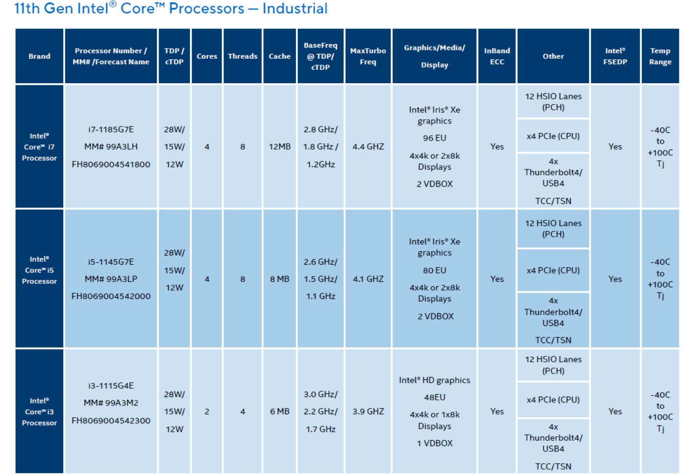 第 11 代英特爾® 酷睿™ 處理器是專為商業和工業應用設計的高性能、低功耗 CPU。該平台結合了速度、高性能英特爾® Iris® Xe 圖形和 AI 加速以及對實時計算的硬體支持,使其成為需要高性能視覺系統、深度學習功能、強大處理能力和/或確定性計算。