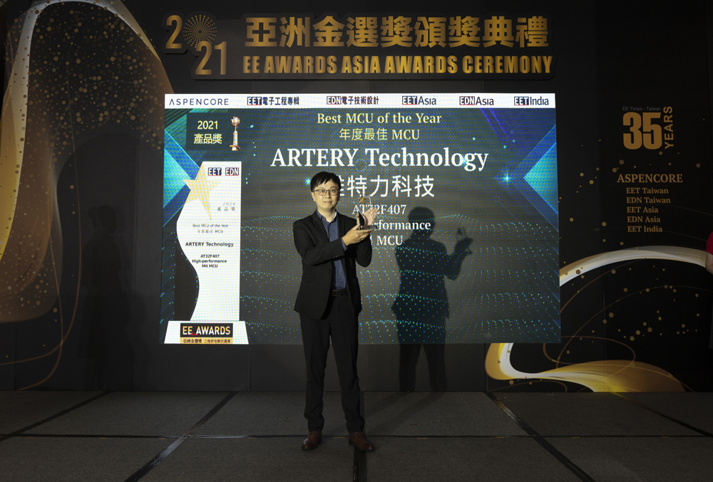 11月16日,由《EE Times》與《EDN》出版集團ASPENCORE主辦的首屆「EE Awards Asia-亞洲金選獎」頒獎典禮在台北寒舍艾美酒店隆重舉行。通過廣大電子產業相關人士及媒體分析師團隊的綜合評審,雅特力AT32F407系列MCU產品憑藉出色的性能和市場表現,斬獲「年度最佳MCU」產品獎。