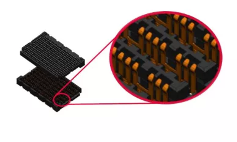 設計規範要求從 GPU 模塊到能夠處理 56 Gbps 的基板的高密度板對板連接。連接器必須足夠小,以便為其他關鍵組件留出空間,實現高差分對數,並保持極低的串擾水平。Molex莫仕 Mirror Mezz 連接器專為此類嚴格限制而設計。這些連接器具有 107 到 115 個差分對 (DP)/in² 的超高密度和 56G-PAM4 信號完整性要求,旨在處理密集 AI 應用程序的數據需求。
