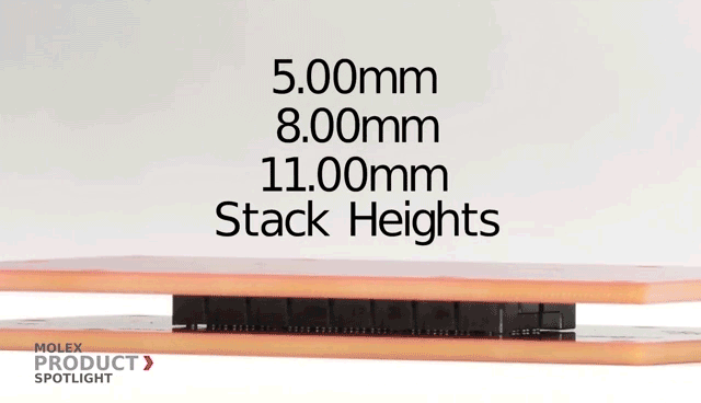 它有多種配合高度可供選擇,從 11.00 毫米到 5.00 毫米,並且可以與柔性電纜鏈接一起使用以增加板對板距離,同時不會犧牲性能。
