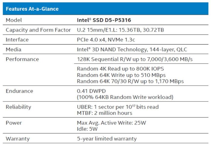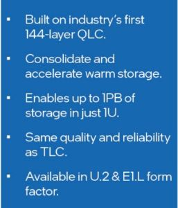 Solidigm SSD D5-P5316 採用業界首款 144 層 QLC 3D NAND 和 PCIe 4.0,讀取優化,可顯著節省總體使用成本,同時加速熱存儲。