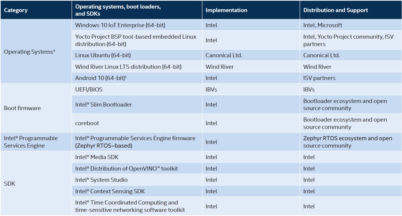 針對物聯網進行了增強,英特爾凌動® x6000E 系列和英特爾® 奔騰® 和賽揚® N 和 J 系列處理器支持這些操作系統、引導加載程序和 SDK
