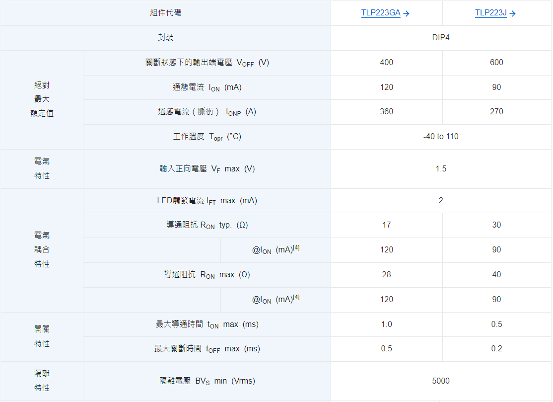 更短的開關特性(導通時間、關斷時間)保證了更快的操作:TLP223GA為50%[2],TLP223J為75%[2] 。
