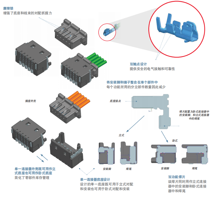 單一連接器外殼既可用作立式底座也可用作臥式底座