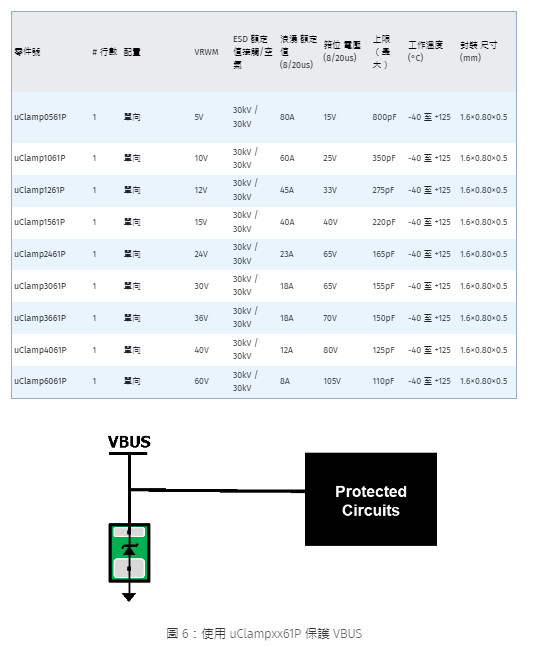 在浪湧事件期間,電源穩定性對於防止 W-Fi 6/6E 路由器發生災難性故障至關重要。保證路由器穩健性的方法之一是為電源線添加外部保護。下表顯示了 Semtech uClampxx61P 系列設備,為 Wi-Fi 6/6E 路由器和通用 I/O 提供 VBUS 和電源線保護