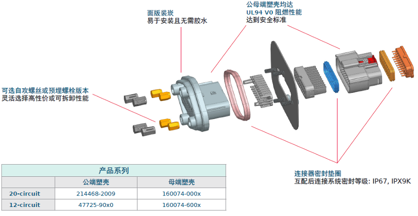 - 防塵防水要求:電池包安裝於車輛底盤,工作環境較為惡劣,連接器須達到IP67、IPX9K防護等級。