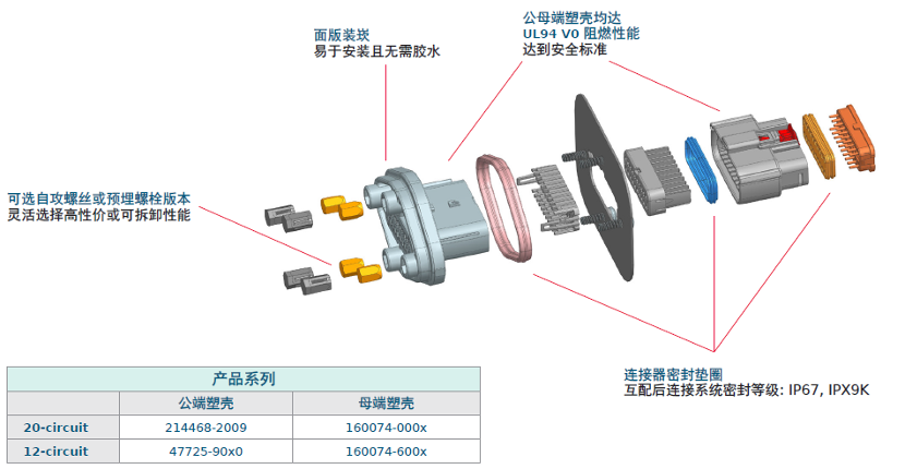 防塵防水要求電池包安裝於車輛底盤,工作環境較為惡劣,連接器須達到IP67、IPX9K防護等級。