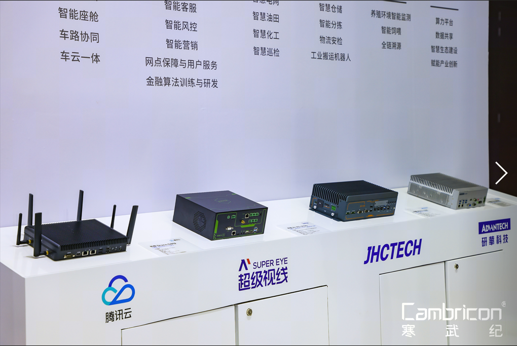 同時,寒武紀還聯合眾多知名合作夥伴,集中展示了搭載寒武紀晶片板卡產品的雲端服務器、邊緣計算設備等硬體產品。
