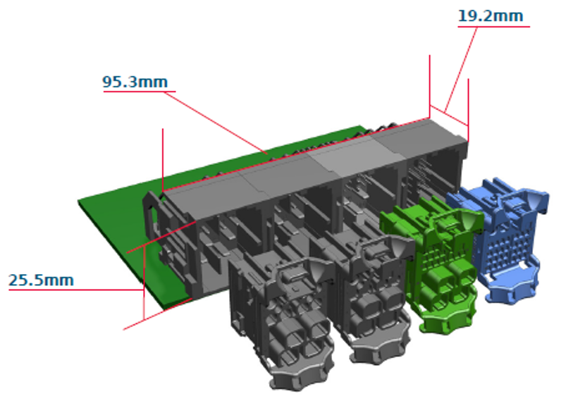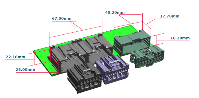 隨著SCM功能越來越豐富,這要求連接器的引腳變得更多,一些高端車型SCM連接器引腳數量甚至超過了80位。通常,SCM布置在汽車座椅下,安裝空間有限,SCM的外形尺寸受到限制,這就要求連接器向著小型化發展。隨著舒適功能越來越多,如加熱,通風,按摩等,SCM需要驅動的執行器也在增多,這要求連接器有更多的大功能端子可供選擇,同時還需要保證連接器的設計適合在狹窄空間內操作,所以要符合人機工程學的設計要求,例如插入力和拔出力不大於75N等。