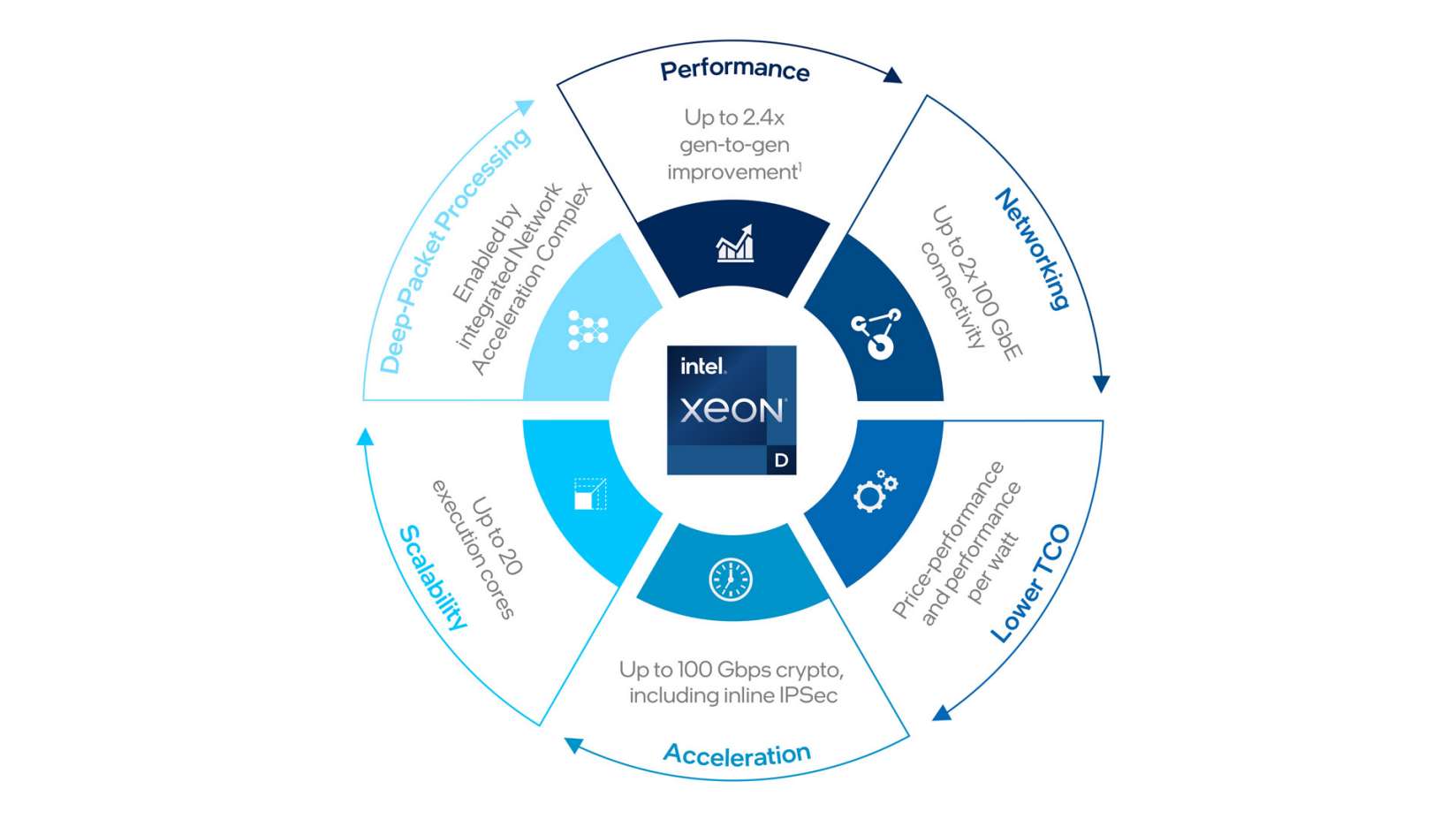 解決方案受益於英特爾®至強® D-2700 和 D-1700 處理器內置的一系列硬體技術,可加速工作負載,包括: