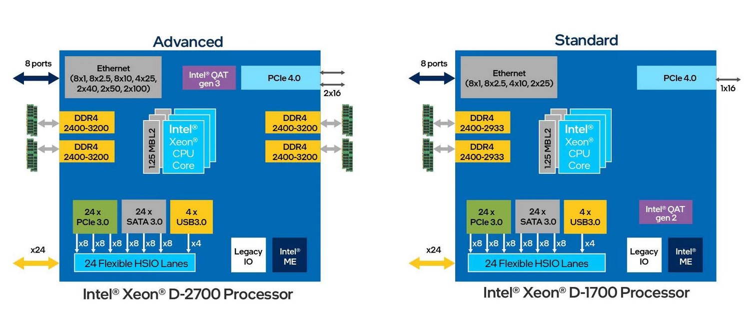 英特爾至強 D-2700 處理器是英特爾至強 D-2100 處理器的繼任者,而英特爾至強 D-1700 處理器取代了英特爾®®®®至強®®®® D-1500 和 D-1600 處理器。在所有情況下,升級都能在計算、內存和 I/O 方面提供顯著、平衡且經濟高效的改進。
