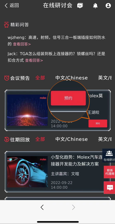 登錄虛擬展廳,點擊右側在線研討;