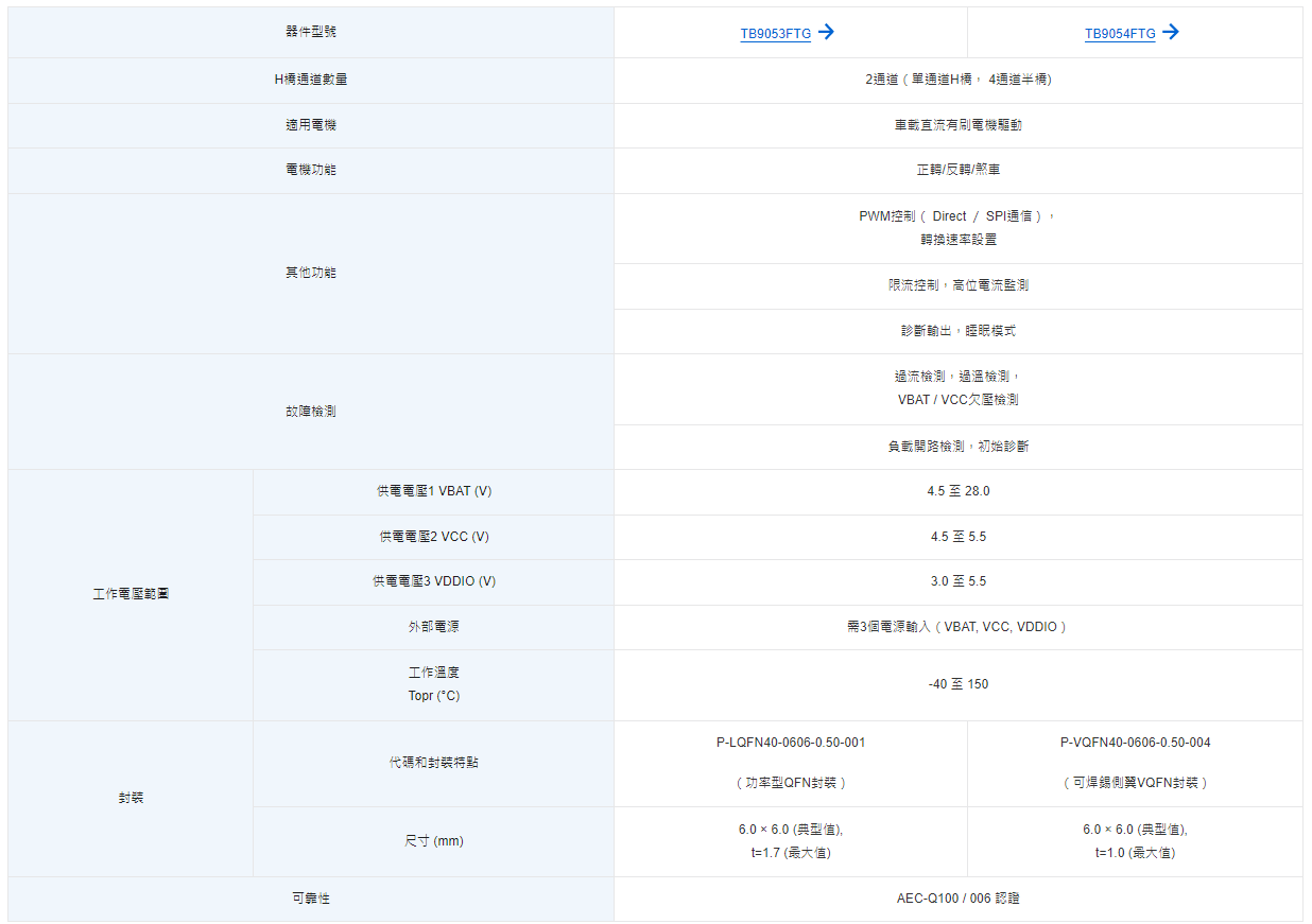 東芝電子元件及存儲裝置株式會社( “東芝”)宣布,推出兩款直流有刷電機驅動晶片 ,分別為“TB9053FTG”和“TB9054FTG” ,增加車載應用產品線,兩款器件均採用2通道輸出驅動,額定電流5A [1] 。