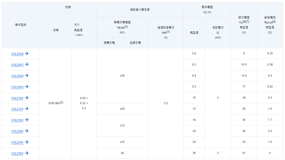 東芝電子元件及儲存裝置株式會社(“東芝”)推出“CSLZ系列”齊納二極管,可保護半導體器件,避免受開關浪湧/感應雷電浪湧 [1] ,以及靜電放電(ESD)[2] 的影響。 本產品線有10款產品,齊納電壓覆蓋範圍5.6V至30V(典型值)。