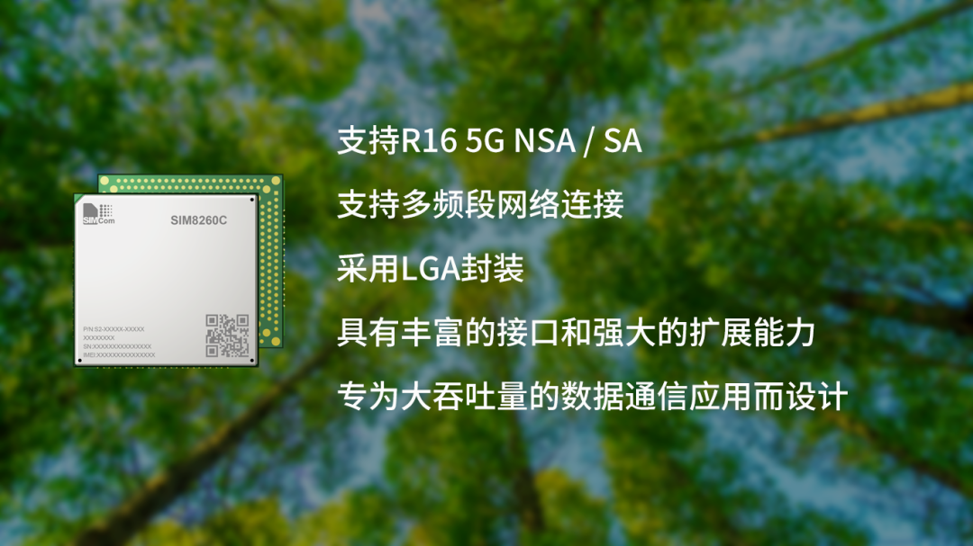 芯訊通5G模組SIM8260C通信性能強大,支持高清視頻數據傳輸,射頻和硬體設計經過多重優化,能夠在密林中保持穩定的無線連接,而且能在室外-30℃ ~ +70℃寬溫環境中工作,讓森林監測設備適應各種嚴酷的環境。
