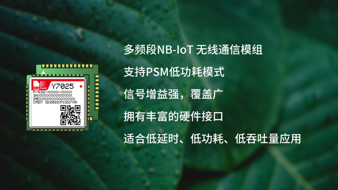 Y7025是多頻段NB-IoT無線通信模組,信號增益強,覆蓋範圍廣,而且支持PSM低功耗模式,應用在生態因子監測設備中,可以在設定的時間報送監測數據,然後進入休眠,低功耗的特性讓設備電池能使用長達10年之久,保證監測數據的連續性。