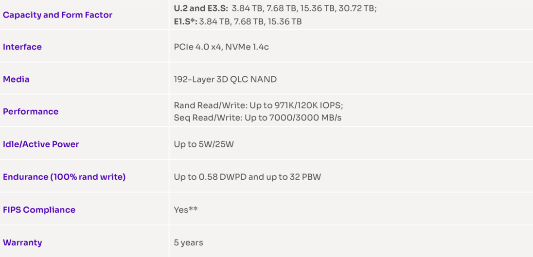 Solidigm的第5代3D NAND, QLC和PCle 4.0控制器,D5-P5430系列提供高容量,讀取優化性能和經濟實惠的QLC驅動器,以滿足數據中心熱存儲的需求。支持常見的存儲工作負載需求,包括4k塊大小的操作。“插入式”解決方案,無需主機端寫入整形。