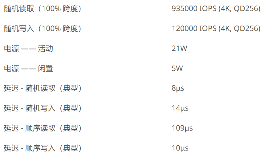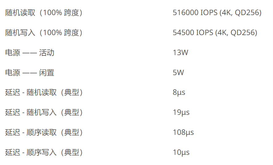 D5-P5430性能參數如下圖所示: