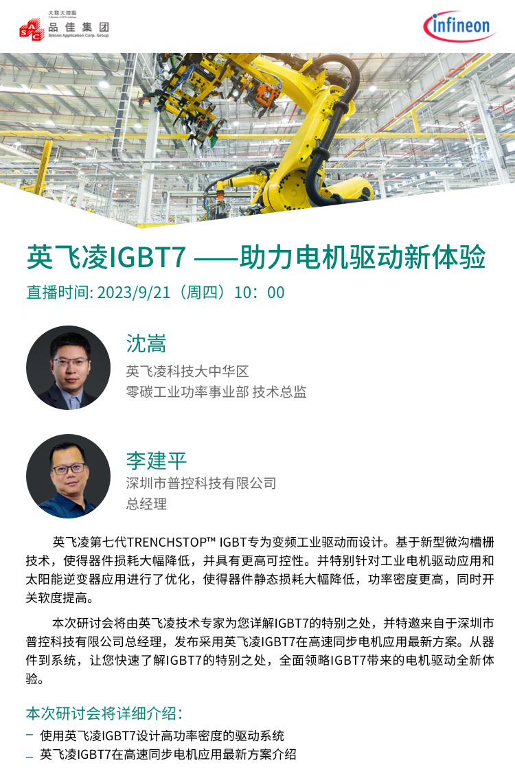 品佳敬邀您參加9月21日「英飛凌IGBT7 ——助力電機驅動新體驗」