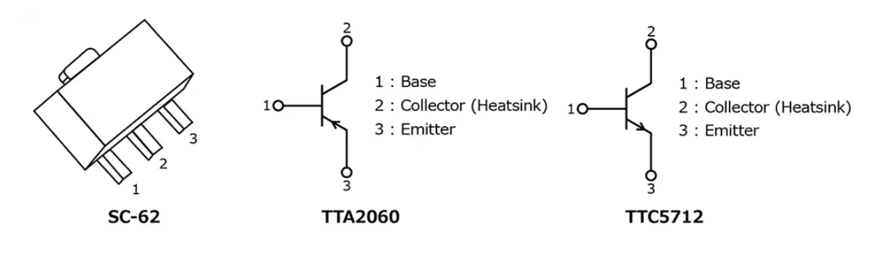 東芝電子元件及存儲裝置株式會社(簡稱“東芝” )現已推出兩款電晶體“TTA2060”和“TTC5712” (採用SC-62封裝:東芝別名PW-Mini )。這兩款產品適用於功率元件中的柵極驅動電路、消費性應用和工業設備中的電流開關以及LED驅動電路。