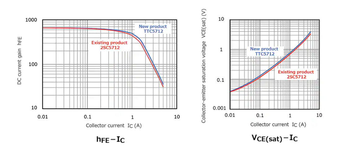 特性相同。 (新產品TTC5712與現有產品2SC5712的對比)
