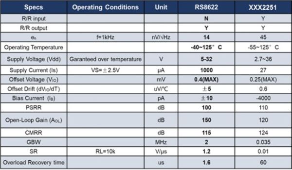 RS862X是一款高壓精密運算放大器,它支持最高32V電壓,失調電壓最大為0.4mV、溫漂為5uV/°C。 RS862X可適用於工業、消費類、醫療等多種應用領域。 例如光網絡控制電路、傳感器控制電路、儀器儀表、筆記本電腦、醫療儀器等。 目前RS862X系列包括RS8621和RS8622,RS8621是單通道,提供SOP8封裝,RS8622是雙通道,提供SOP8和MSOP8封裝。