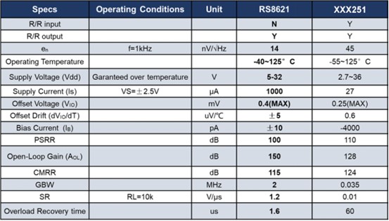 • 軌對軌輸出特性保證運放的輸出範圍接近於電源軌/地,最大化了信號的動態範圍,提高了信號鏈路整體的信噪比。
