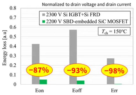 2300V Si IGBT模組與SiC模組開關損耗比較