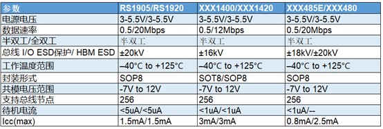 RS1905/RS1920是一款低功耗、高抗噪性的RS-485半雙工收發器,它的數據速率分別為0.5Mbps/20Mbps,可使用在高噪聲環境,總線I/O ESD保護:±20kV HBM,無需使用其他系統級ESD保護組件,此外該器件共模電壓範圍-7至+12V,支持多達 256 個總線節點,適用於長電纜上應用。 RS1905/1920器件可提供小型Sop8封裝,工作溫度範圍為–40°C至125°C,該器件適用於電錶、逆變器、暖通空調系統和視頻監控控制等應用。