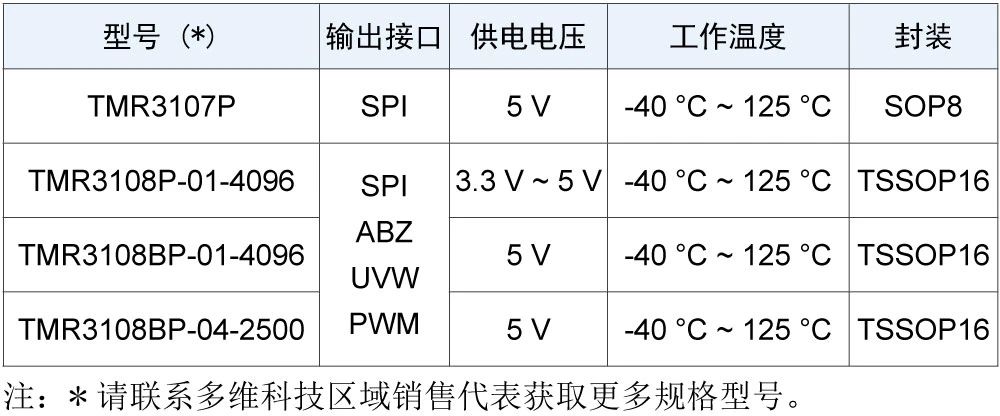 多維科技TMR3107和TMR3108磁性旋轉編碼器晶片產品適用於BLDC無刷電機位置檢測、轉速檢測、閉環步進電機位置檢測,2500線增量式和17位絕對式伺服編碼器及多種非接觸式角度檢測等應用。