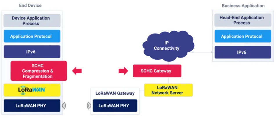 SCHC 將 LoRaWAN 終端設備轉換為靜態配置的 IPv6 對象,並且可以從任何互聯網應用程式輕鬆尋址。它從設備到應用程式端到端地維護客戶端基於 IP 的應用程式環境。 SCHC 能夠將連接到 LoRaWAN 網路的設備與客戶的其他網路和應用解決方案無縫整合。