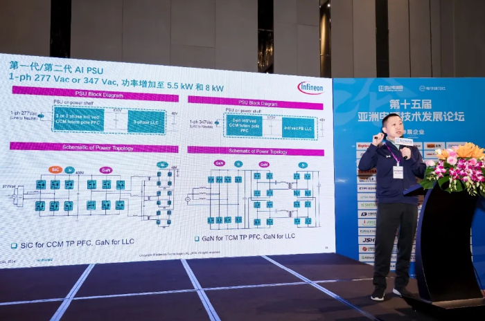 在稍早舉行的第十五屆“亞洲電源技術發展論壇”上,英飛凌科技消費、計算與通訊業務大中華區市場總監程文濤先生髮表題為“英飛凌為AI數據中心提供先進的高能效電源解決方案”的主題演講。