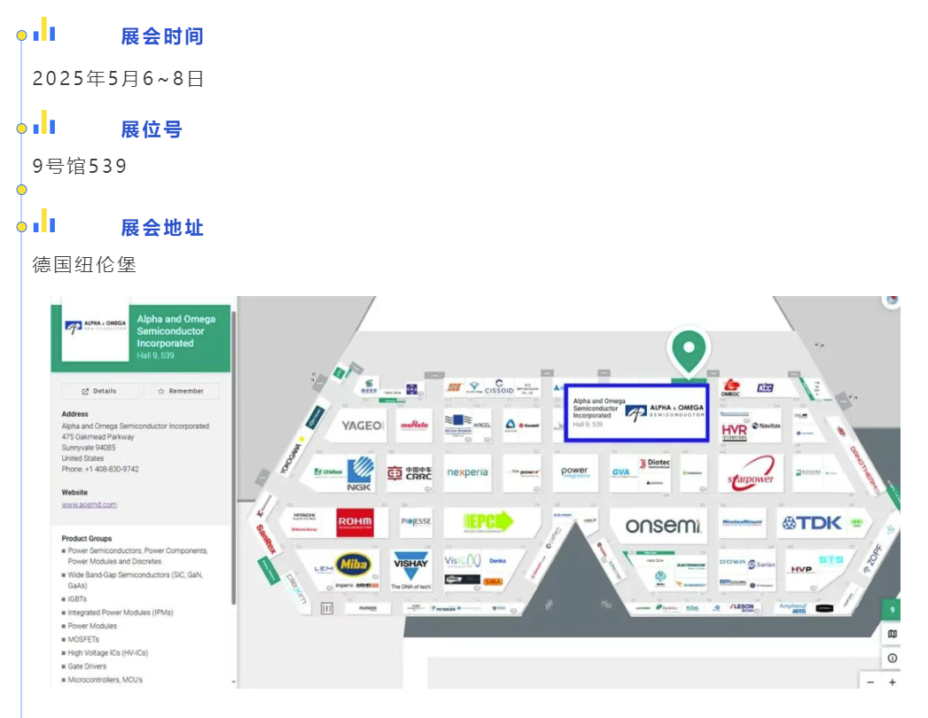 日前,集设计研发、生产和全球销售为一体的著名功率半导体及芯片解决方案供应商Alpha and Omega Semiconductor Limited 将携全系列创新电源管理解决方案亮相2025年欧洲国际电力元件及可再生能源展览会(PCIM Europe 2025),AOS公司将在09馆539展位展示包括新一代高能效电源管理芯片组以及突破性功率半导体技术方案在内的多项创新成果,这些产品技术已成功解决电动汽车、工业自动化及可再生能源等领域的核心设计挑战。现诚邀业界同仁莅临展位,共同探讨前沿电源管理技术的最新发展。
