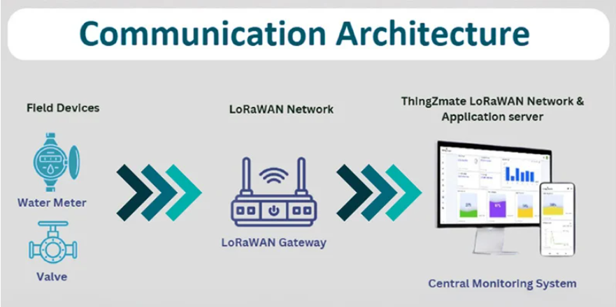 該系統包括安裝在配水點的智慧水錶、用於可靠通訊的私人 LoRaWAN 網路以及用於即時數據聚合和分析的基於雲端的物聯網平台。該解決方案實現了即時水追蹤、遠端供應控制和預測性維護,最終將水資源浪費減少高達 10%。