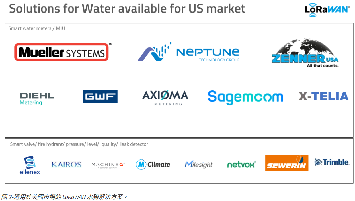 圖 2-適用於美國市場的 LoRaWAN 水務解決方案。