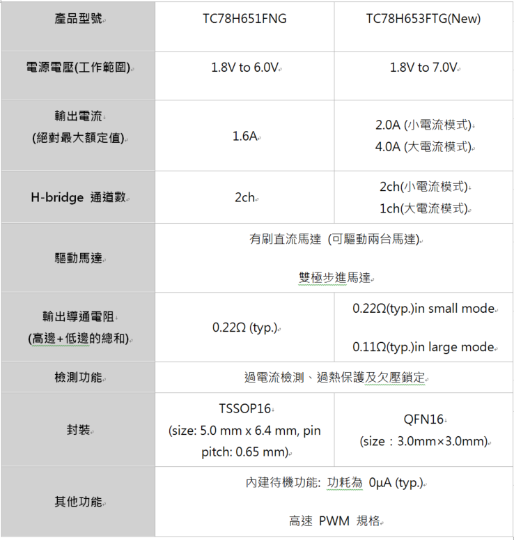 東芝電子元件及儲存裝置株式會社(東芝)針對有刷直流馬達及步進馬達應用,推出TC78H653FTG其內建Dual H bridge(雙H橋) 驅動IC,可同時驅動兩顆馬達,並節省外部MOS成本及PCB空間。