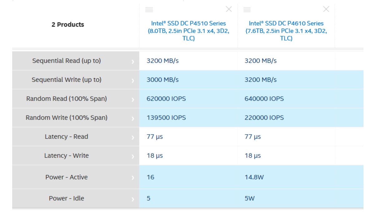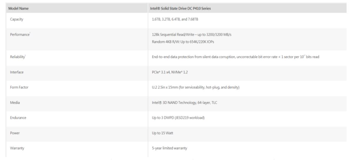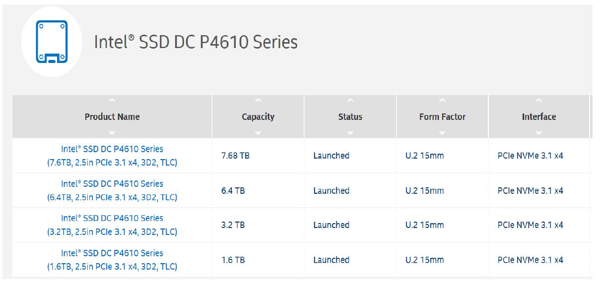 作為第二代64Layer 3D TLC NAND的最新成員P4610。P4610和P4510一樣捨棄HHHL而只保留了2.5'' U.2一種FF, 容量有1.6TB, 3.2TB, 6.4TB和7.68TB四種。