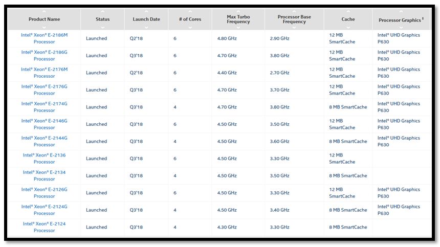 2018年7月Intel公司宣佈推出新款Intel® 至強® E-2100 處理器,這是Intel至強 E3 處理器的繼任產品,專為入門級工作站打造,旨在幫助創意人士在經濟可靠的優化平臺上,獲得強大的單執行緒應用性能。