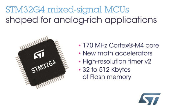 針對先進的數位電源應用以及消費性電子和工業設備,STM32G4*系列微控制器導入兩個新的硬體數學運算加速器來提升應用的處理速度,利用Cordic演算法和濾波函數等各種技術來增加性能和效能。數學運算加速器專門用於加快運算速度,例如,家電或空調所採用的節能馬達控制演算法中之三角函數計算,以及訊號調節或數位電源控制演算法中的濾波演算法,運算速度相較通用主處理器更快,且效率更高。此外,這種減負方式還可讓內核心釋放更多資源,用於接收更多感測器資料和控制其他功能。