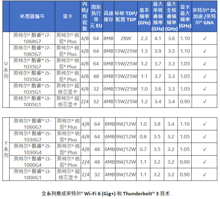 英特爾正式發佈了 11 款高度集成的全新第十代智慧英特爾® 酷睿™ 處理器,該系列處理器專為時尚美觀的 2 合 1 電腦和筆記型電腦而設計。這些處理器將高性能人工智慧 (AI) 大規模應用於 PC,配備全新英特爾® 銳炬® Plus 顯卡,助力打造令人震撼的娛樂體驗,並採用英特爾® Wi-Fi 6 (Gig+) 和 Thunderbolt™ 3 技術,支援實現最佳連線性i。PC 製造商將于聖誕銷售日推出首批系統。