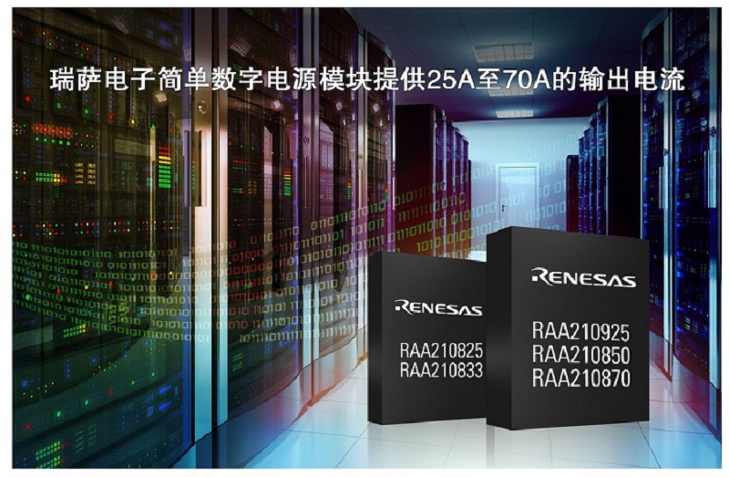 全球領先的半導體解決方案供應商瑞薩電子株式會社日前宣布,推出新型全塑封型數字 DC/DC PMBus™ 電源模塊系列。五款RAA210xxx 簡單數字電源模塊提供了先進的數字通訊和監測功能,與瑞薩電子的模擬電源模塊一樣簡單易用。這些產品是完全的降壓穩壓電源,可提供 25A、33A、雙25A、50A 和 70A 的輸出電流,同時可在業界標準的 12V 或 5V 輸入電源下運行。RAA210xxx 系列為服務器、存儲、光網絡和電信設備中使用的高性能FPGA、DSP、ASIC 和存儲器提供負載側 ( POL ) 直接供電。每個模塊器件都採用了散熱最優化的高密度集成 ( HDA ) 封裝,並高度集成了 PWM 控制器、MOSFET、電感器和無源器件。簡化的模塊應用只需配備輸入和輸出大容量電容器即可完成完整電源設計。