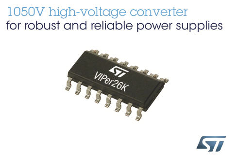 ST推出新款VIPer26K高壓功率轉換器,其整合一個1050V耐壓N-Channel功率MOSFET,使離線電源兼具寬壓輸入與設計簡單之優勢。